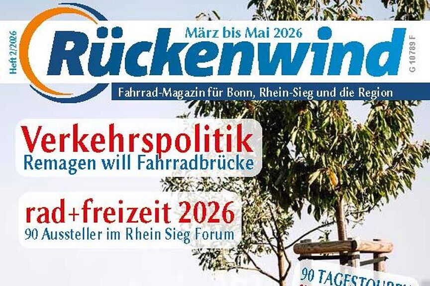 ADFC-Mitglieder erhalten das vierteljährlich erscheinende Magazin per Post oder auf Wunsch als Link zum E-Paper. Der in einer Auflage von mindestens 10.000 Exemplaren erscheinende Rückenwind liegt auch in Cafés, Kneipen, Kultureinrichtungen, Büchereien, Fahrradgeschäften, Bioläden, Lebensmittelläden, Touristeninfos, Universitätseinrichtungen und Sportstätten aus. Sie möchten in Ihrem Geschäft den Rückenwind auslegen? Gerne senden wir Ihnen kostenlos die gewünschten Exemplare. Bestellung an: info@adfc-bonn.de